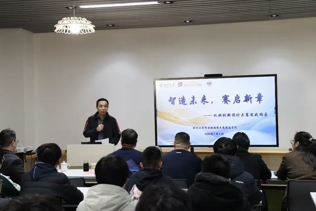 为深化“赛教融合、实践育人”人才培养模式,推动学科竞赛与专业建设协同发展,近日,扬州大学布拉德福德先进制造学院在扬子津校区昭文馆S515多功能厅举办“学科竞赛与智能制造”专题讲座。南京航空航天大学虚拟仿真实验教学中心副主任葛旺老师、北京中教仪人工智能科技有限公司高教部部门经理孙宗涛工程师受邀作专题报告,扬州大学布拉德福德先进制造学院常务副院长朱卫军、机械工程学院尹彬沣副教授、扬州大学布拉德福德先进制造学院团委(学工办)书记(主任)卢遥老师以及机械2501班主任吴闯老师共同参会,共探以赛促学新路径。