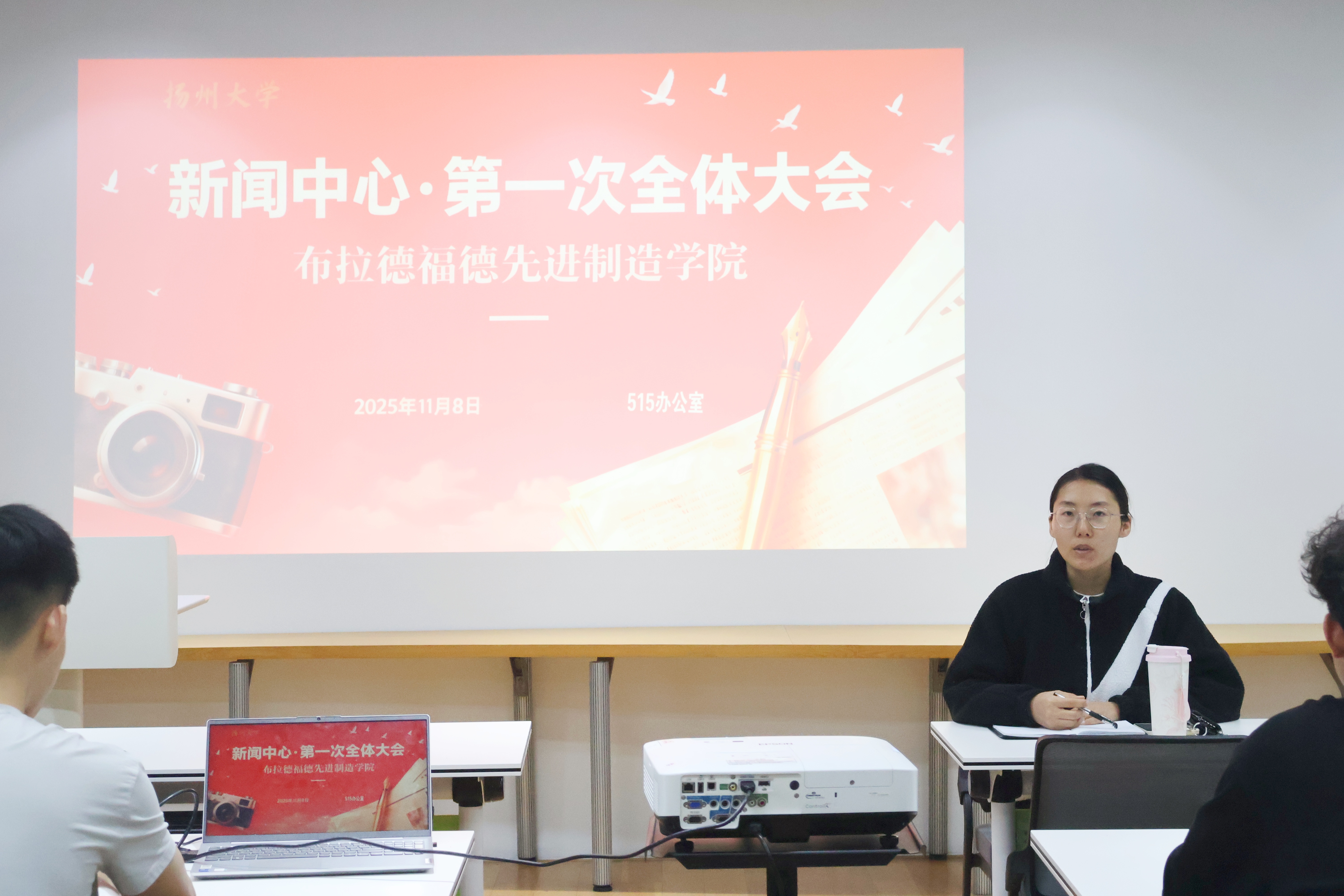 2025年11月8日,扬州大学布拉德福德先进制造学院新闻中心第一次全体线下会议顺利举行,本次会议由赵婷婷老师主持开展。会议从各位成员的自我介绍开始,这场自我介绍,不仅仅是简单的信息传递,更是团队凝聚力的一次升温。为推动各项工作有序开展,会议明确了各部门核心职责,也让每一份热忱都能落地生根。赵老师引导各位成员们,在扎实做好本职工作的基础上,加强与其他部门的协作,携手互帮、同心聚力,学院宣传工作方能行稳致远。